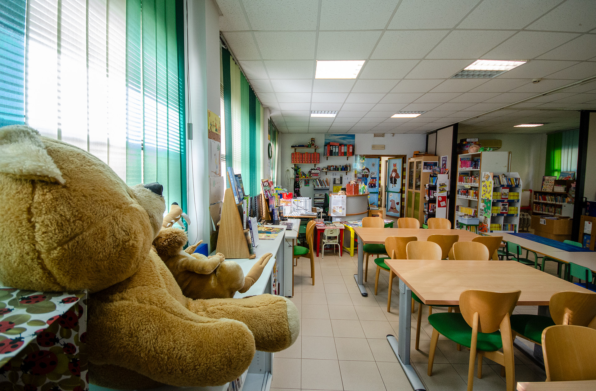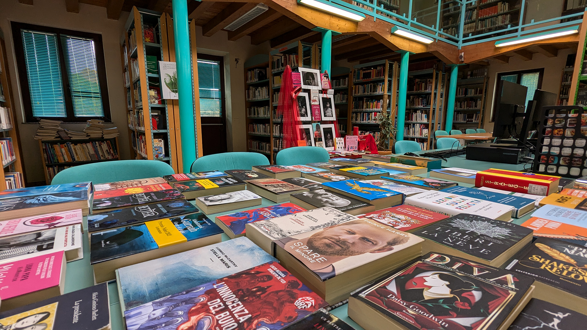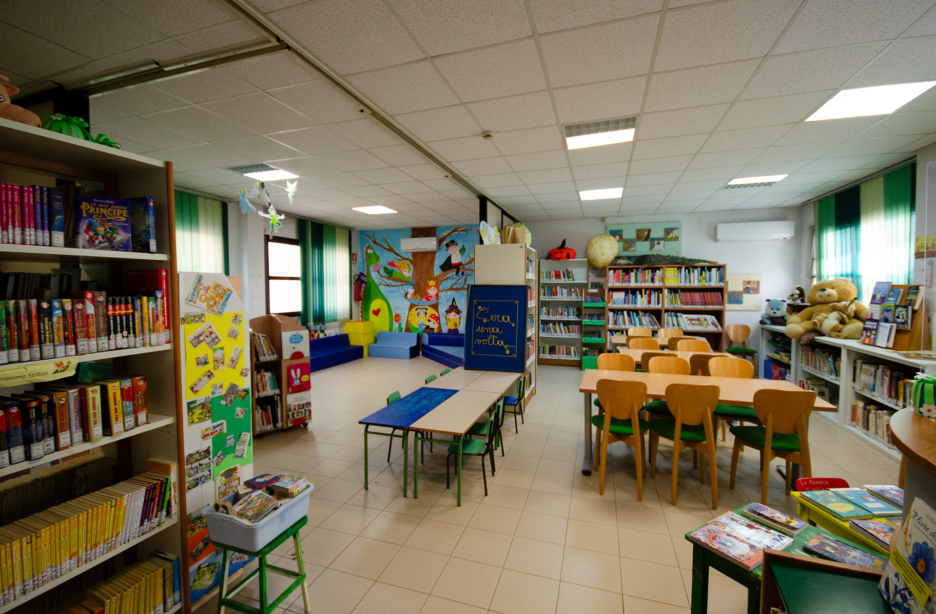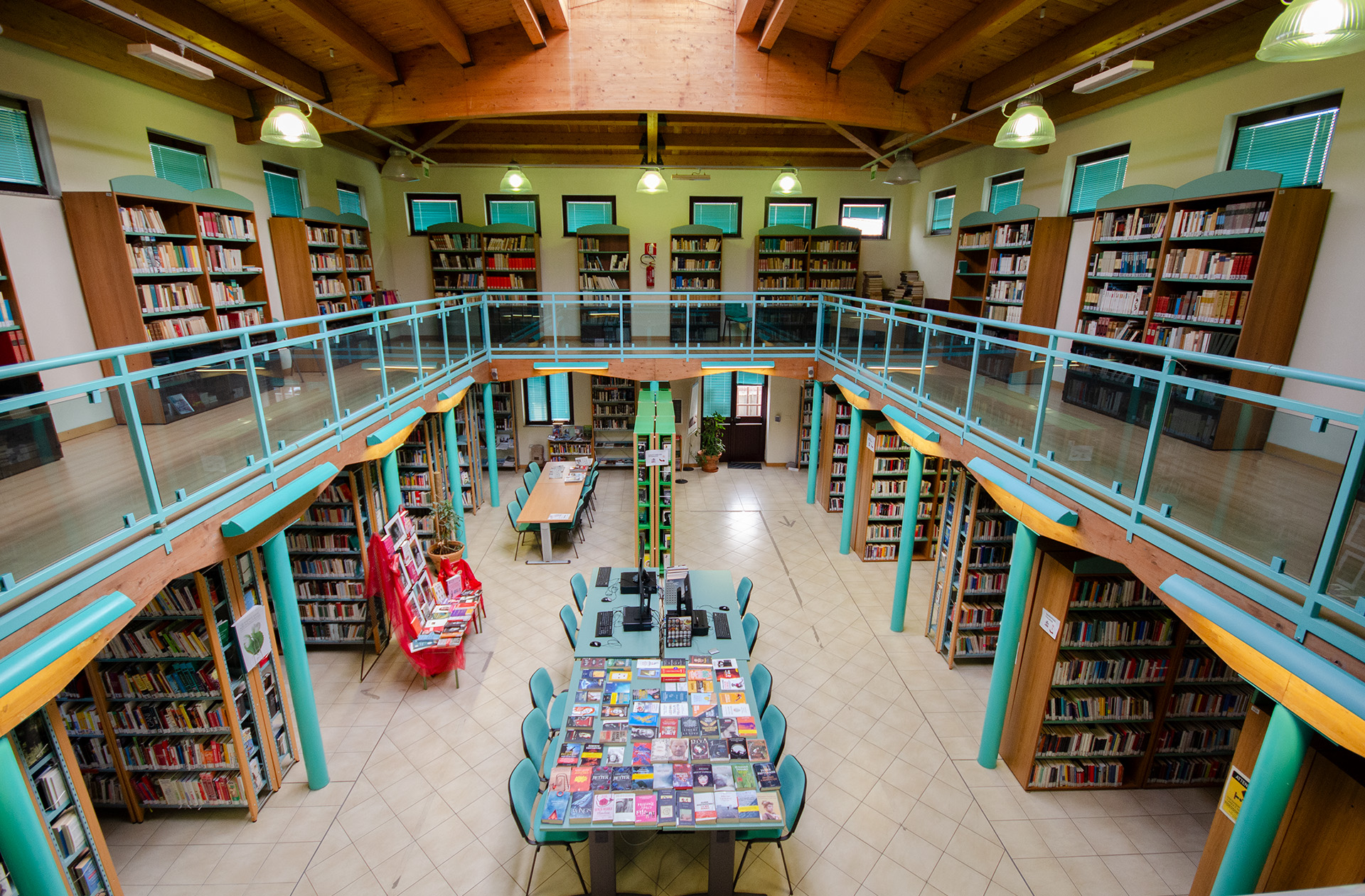 La biblioteca è disposta su due piani e ospita una Sezione Adulti e una Sezione dedicata ai Ragazzi.