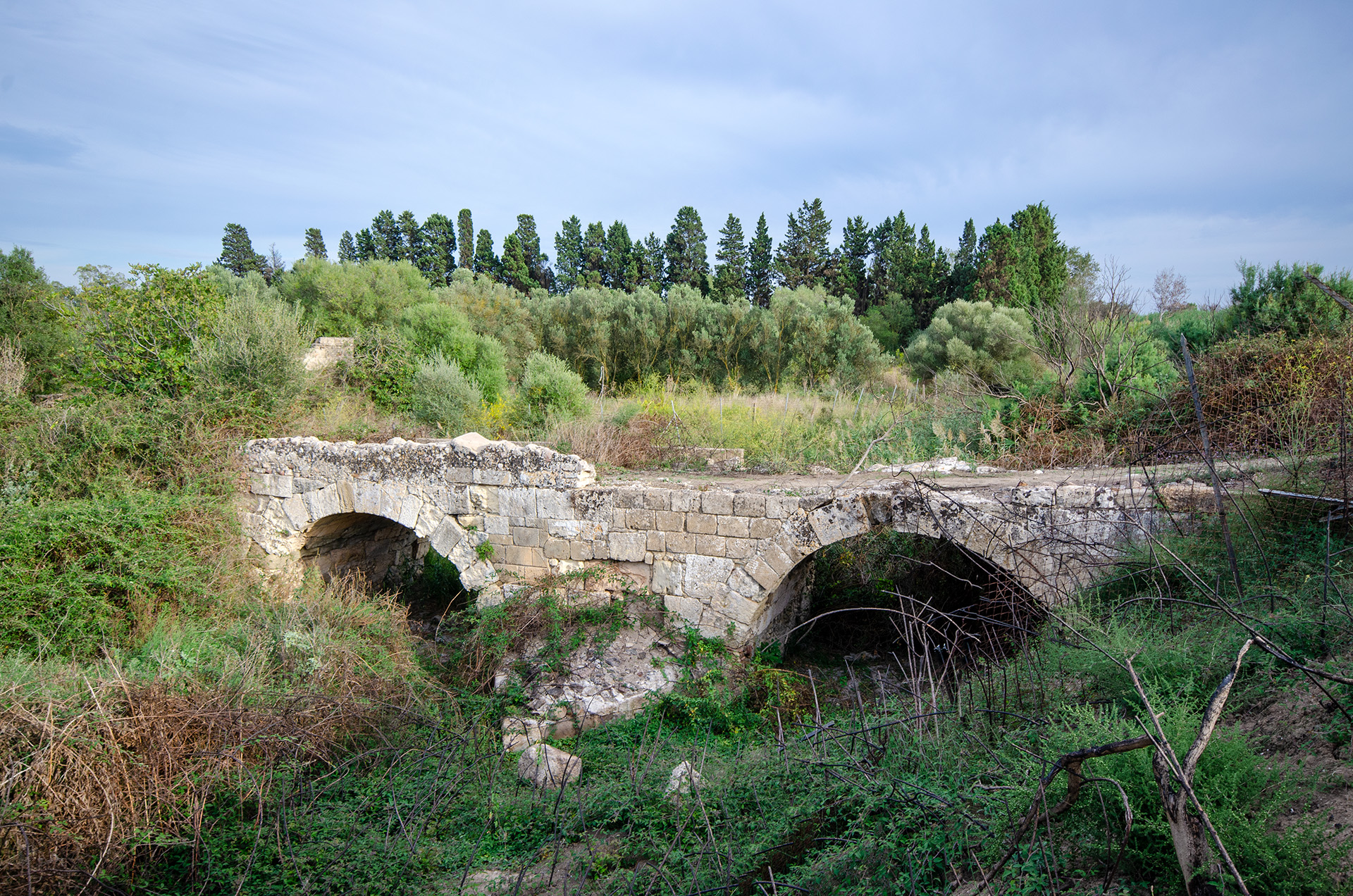 La struttura originaria venne realizzata con blocchi squadrati di calcare messi in opera a secco ed è conservata ancora oggi nelle arcate e nei resti in parte crollati all’interno dell’alveo del Rio Sesi. In un secondo momento il ponte venne ricostruito con l’utilizzo di blocchi antichi e l’inserimento di zeppe e malta cementizia; in alcune parti vennero sistemati dei ciottoli fluviali affogati nello stesso tipo di malta, in modo da creare una sorta di intonaco. In altri punti i ciottoli vennero inseriti nella muratoria senza la malta a vista, probabilmente in un periodo successivo. L’ultima fase di restauro, quella attuale, è riconoscibile per l’uso di blocchetti squadrati in arenaria.
